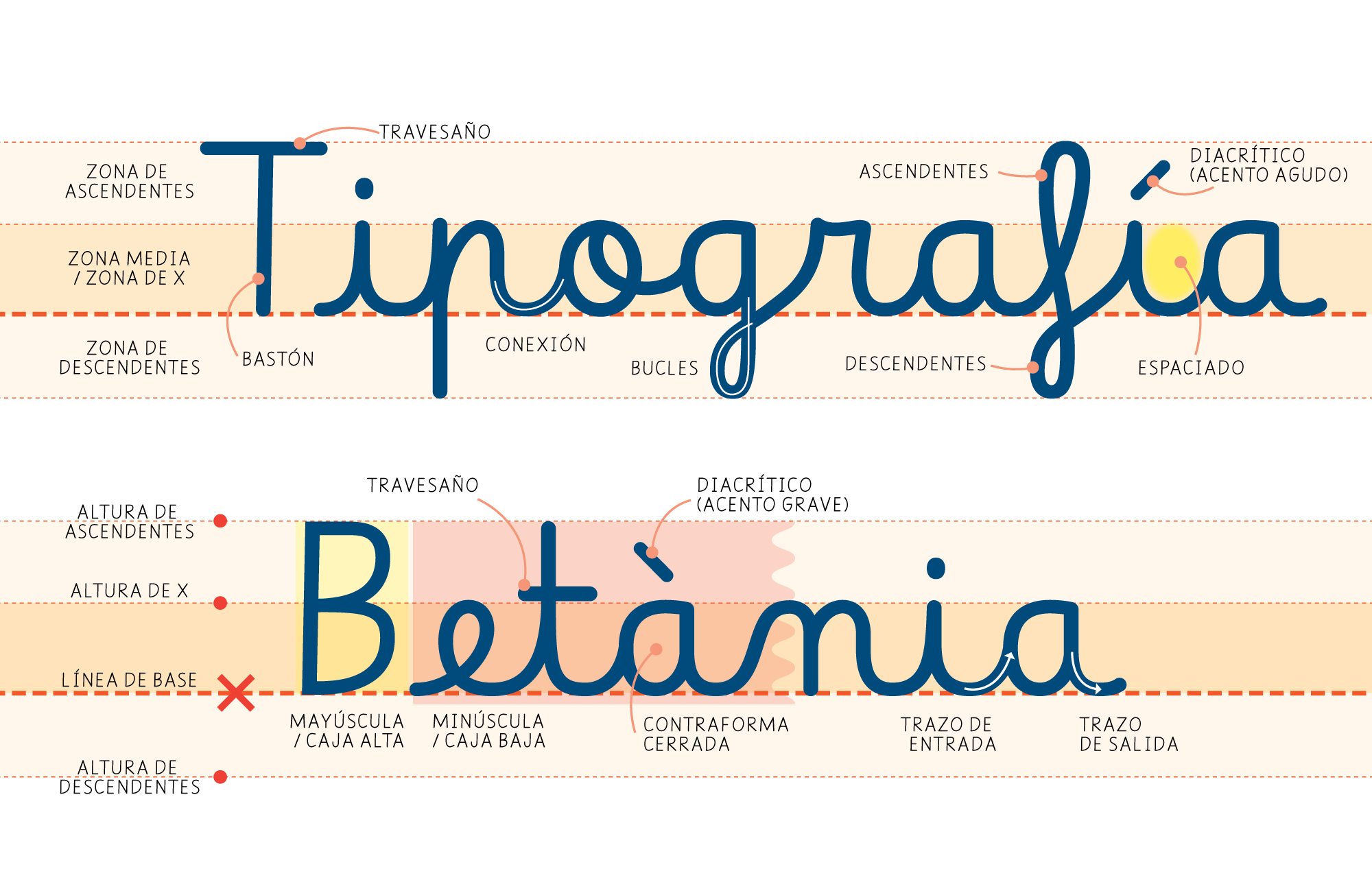 Betània Patmos tiene una morfología austera para facilitar el reconocimiento del ductus de los signos. No es una tipografía display, es una herramienta para la enseñanza de la lecto-escritura.