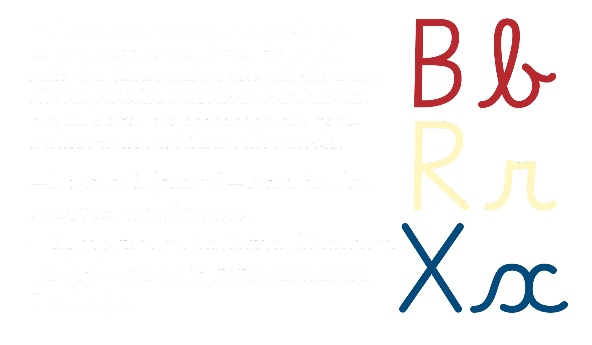 BP has an austere morphology to facilitate the recognition of the ductus of the signs. It is not a display typeface; it is a tool for teaching literacy.