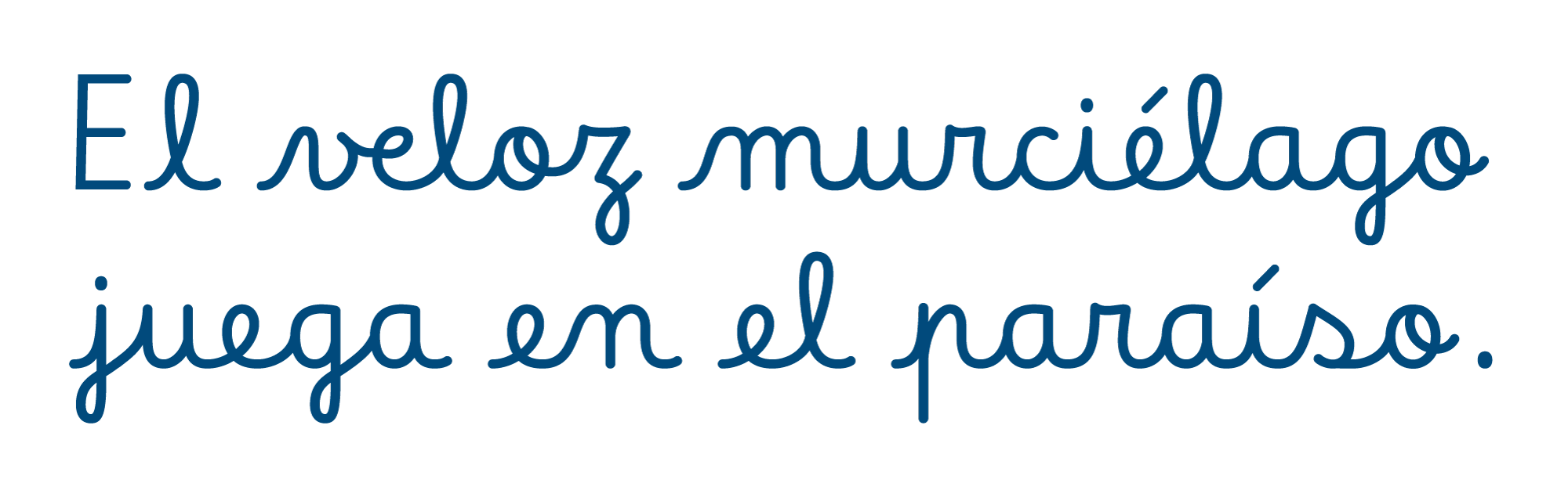 2 • Funcionalidad simplificada. Proyectada para que docentes o personas no familiarizadas con los programas de diseño puedan componer y autoeditar fichas educativas o material pedagógico utilizando herramientas como LibreOffice, Notepad, TextEdit, Microsoft Office, etc. El desarrollo OpenType está estructurado con reemplazos contextuales (contextual alternate / calt), siguiendo el modelo propuesto por Rosalie Wagner, que contempla la compatibilidad con estas aplicaciones.